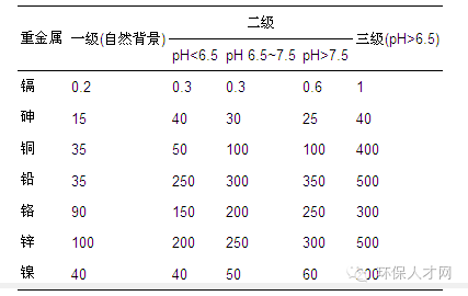 表1 土壤重金屬污染分級標準