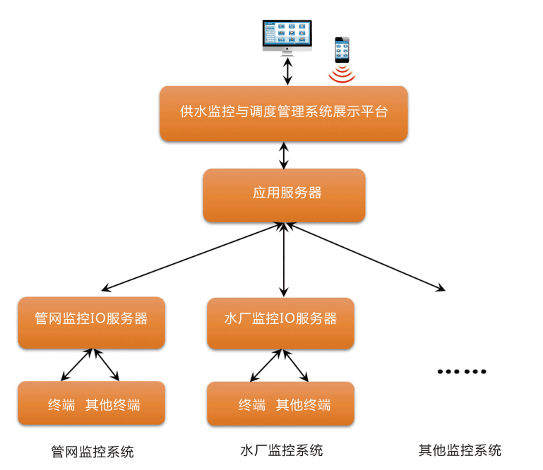 自來水公司由于建設周期長等原因,一般存在多個不同廠家的監控產品,例如管網壓力監 測系統,泵站遠程監控系統,分區計量管理系統等。 眾多信息化系統自成體系、信息孤立、管理困難。如何管理眾多臨控系統,成為了自來水 公司的工作難點。我公司研發的供水監控與調度管理系統平臺,完美解決了這一難題。對于原 有系統的整合,我公司提出了兩種經濟合理的融合方案。 首先了解一下供水監控與調度管理系統平臺結構: