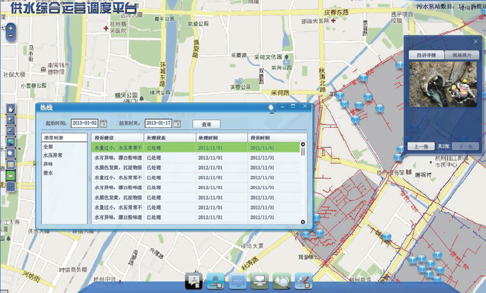 供水管網可視化:實現管網管線及相關資料的在地圖上可視化查詢、統計、打印以及輸出,提供對地